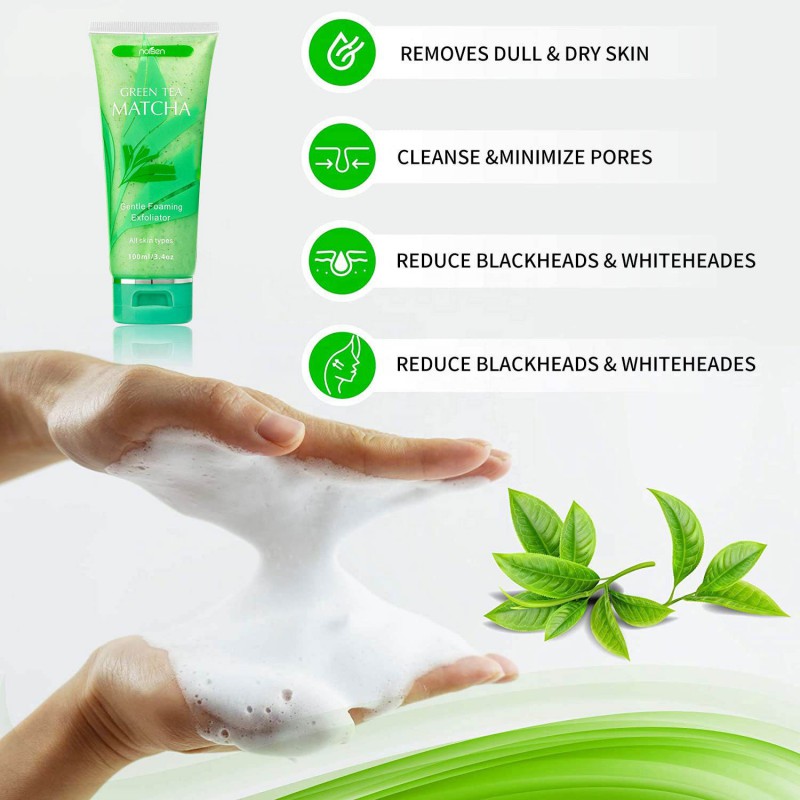 Private Label Green Tea Gentle Exfoliating Cleanser Gentle Foaming Face Skin Care Scrub Cleanser