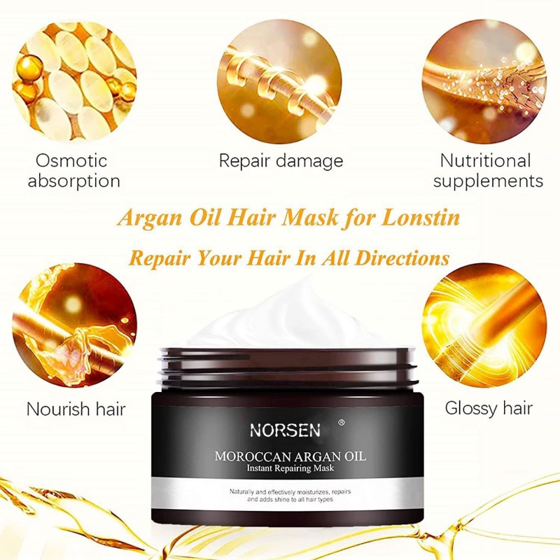 This hair mask has twice the nutrient content of argan oil than ordinary hair mask or argan oil conditioner. Extracting its essence correctly and maximizing its effectiveness, they will have many positive effects. Facts have proved that it can make hair more moist, smooth and shiny. Long-term use of hair can restore health. A super hydrating formulation formula of our hair mask will revitalize and repair your hair to the core. It can provide intense nourishment for color-treated hair to strengthen and smooth dry and damaged hair strands, helps repair even the most severely dry or damaged strands.