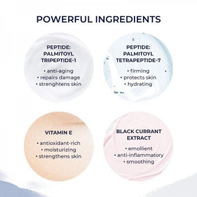 Water, cetearyl alcohol, cetyl octanoate, dioctyl succinate, cetyl alcohol, sodium polystyrene sulfonate, chlorella vulgaris extract, glycerin, cyclopentasiloxane, cetearyl glucoside, sea whip (pseudopterogorgia elizabethae) extract, dimethicone, hydrolyzed algin, sea water, butylene glycol, palmitoyl oligopeptide, palmitoyl tetrapeptide-7, passionflower (passiflora) extract, black currant (ribes nigrum) extract, grape (vitis vinifera) leaf extract, tocopherol, pentylene glycol, polysorbate 20, laureth-4, behenyl alcohol, potassium carbomer, polyacrylate 13, polyisobutene, disodium EDTA, ethylhexylglycerin, methylisothiazolinone.