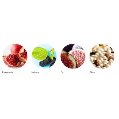Water, 1,3-propanediol, sorbitol,Glycerin,Pomegrante,Mulberry,Fig,Ginko,Rose Extract,Viatmin C,Jojoba Oil