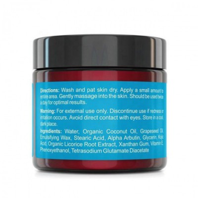 Water,Organic Coconut Oil,Grapeseed Oil,Emulsifying Wax,Stearic Acid, Alpha Arpha Arbutin,Glycerin,Kojic Acid,Organic Licorice Root Extract,Xanthan Gum,Vitamin E,Phenoxyethanol,Tetrasodium Glutamate Diacetate