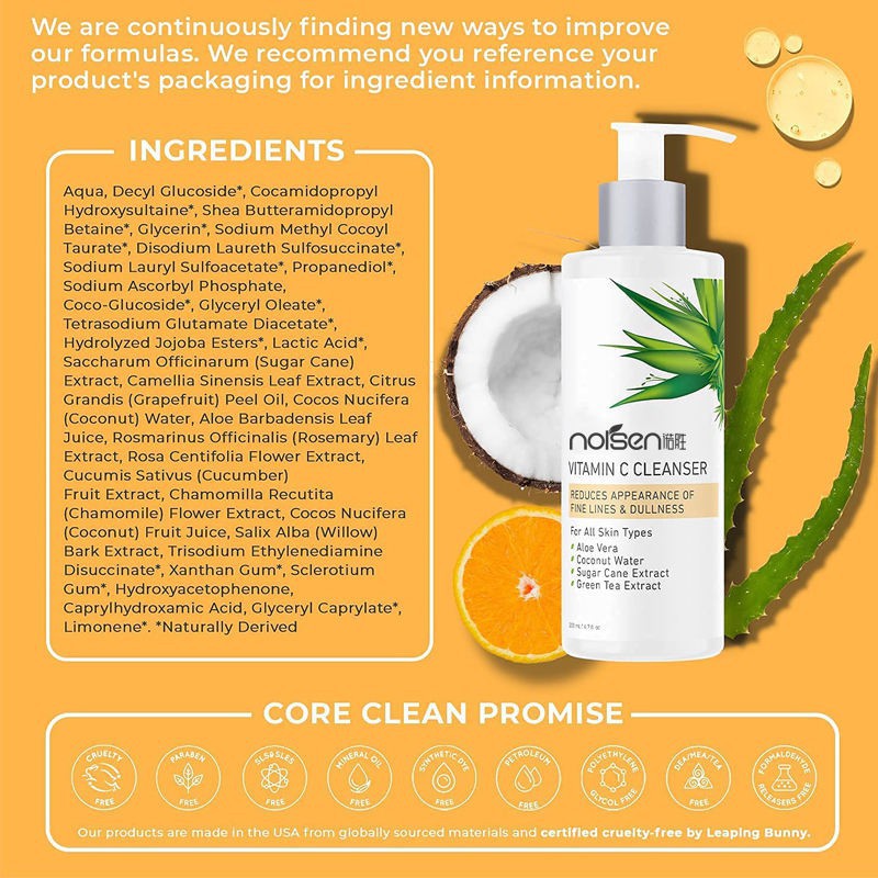 Hot Selling Private Label Natural Organic Skin Care Face Wash Oil Control Deep Cleansing Vitamin C Facial Cleanser