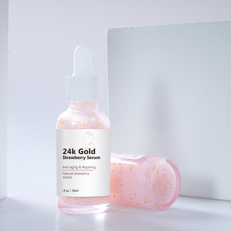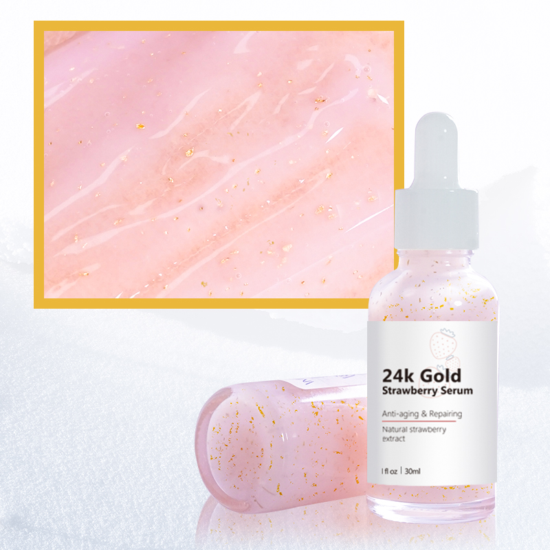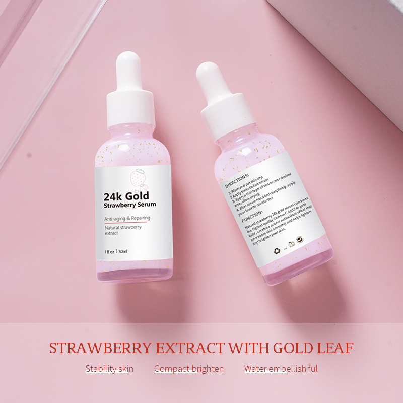 OEM Skin Whitening Anti Aging Organic Strawberry 24K Gold Face Serum With Vit C Serum